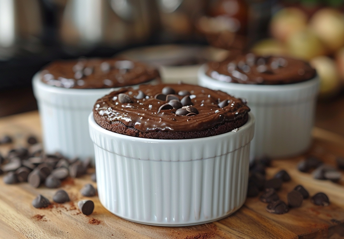 В миске смешать все ингредиенты, взбить миксером. Вылить в высокую кружку — она должна быть заполнена не более чем на 1/3. Выпекать в микроволновой печи на максимальной мощности 3 минуты.