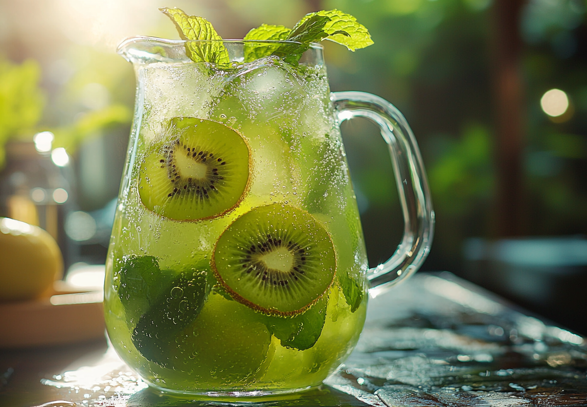 Лимонад с киви и мятой — это освежающий напиток, который станет вашим спасением в жаркие дни! Яркий вкус киви, цитрусовая нотка лимона и свежесть мяты создают идеальный баланс. Готовится за считаные минуты, а результат впечатляет!