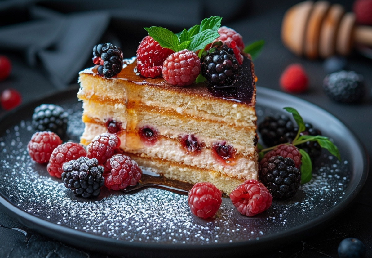 Медовик с ягодами — слоеное пирожное с нежной текстурой и неповторимым медово-сметанным привкусом. Рассказываем, как самостоятельно испечь лакомый десерт
