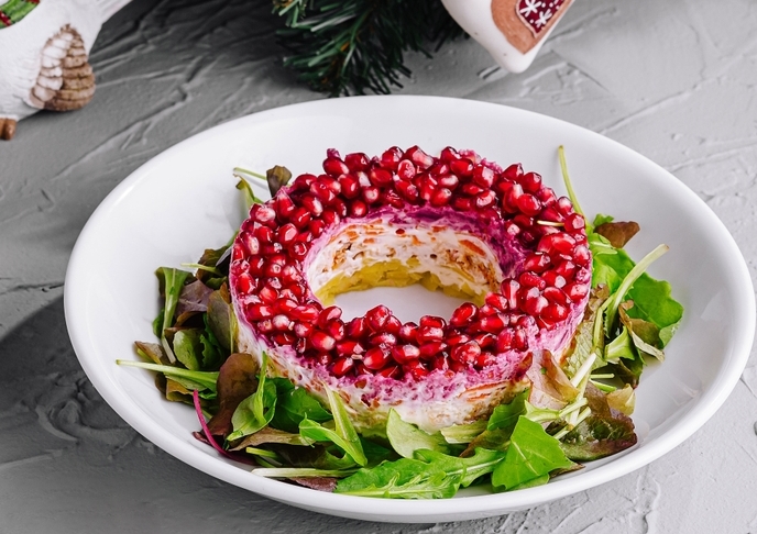 Салат «Гранатовый браслет» с курицей готов!
