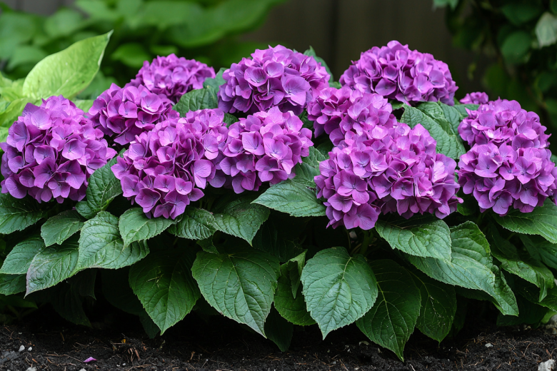 Эта великолепная гортензия станет жемчужиной вашего сада, покоряя своими роскошными пурпурно-розовыми соцветиями и насыщенной зеленой листвой. Её уникальная особенность — способность менять оттенок цветков в зависимости от кислотности почвы: от нежно-розового до глубокого пурпурного. Крупные шаровидные соцветия диаметром до 20 см украшают куст с июля до поздней осени, создавая потрясающий эффект цветущего водопада.