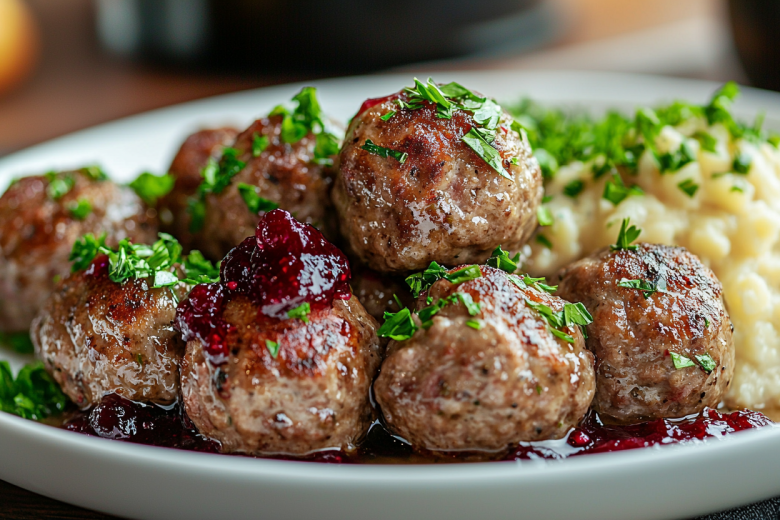Эти фрикадельки — воплощение скандинавского уюта. Нежные, ароматные, с двумя соусами — нежным сливочным и ярким ягодным, они нравятся и взрослым, и детям.