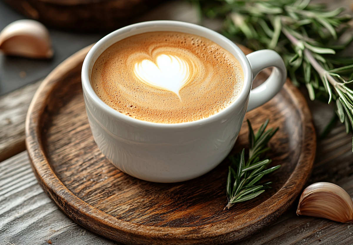 Получится напиток с древесными нотами розмарина, пикантной чесночной глубиной и классической кофейной горчинкой. Подавайте в маленьких чашках, чтобы насладиться необычным вкусом постепенно. Такой кофе отлично сочетается с темным шоколадом или орехами.