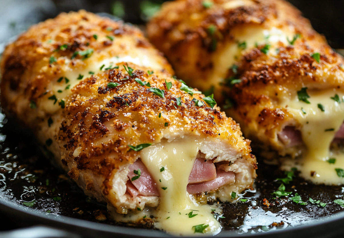 Куриный кордон блю — нежная классика с сырной начинкой! Этот изысканный рецепт кажется ресторанным, но готовится просто. Куриную грудку разрежьте вдоль, но не до конца, раскройте как книжку и слегка отбейте. Внутрь положите ломтик ветчины и сыра (отлично подойдёт эмменталь или гауда). Края аккуратно защипните зубочисткой.