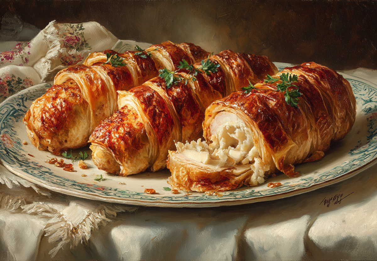 Когда надоедает курица, готовлю из нее рулетики в шубе: одна пачка слоеного теста творит чудеса