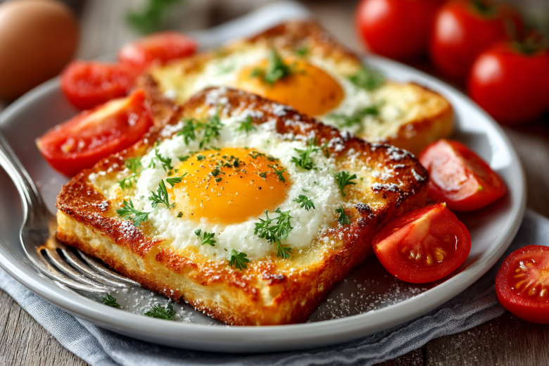Тосты с яйцом — это идеальный завтрак, когда времени в обрез, а накормить семью нужно вкусно и сытно. Хрустящий обжаренный хлеб, яйцо с жидким желтком, помидор и расплавленный сыр создают идеальное сочетание.