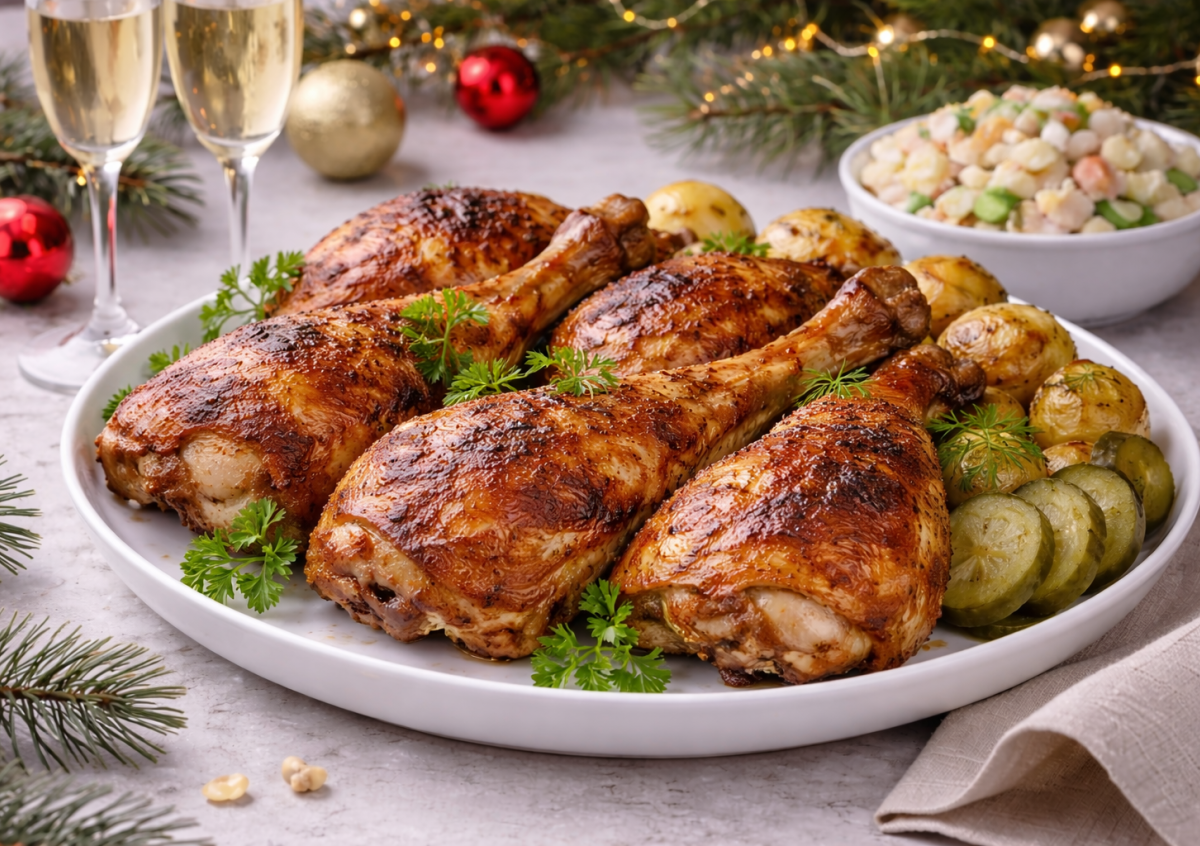 Этот рецепт — чистая ностальгия. В 90-е куриные окорочка были отдельной звездой кухни, и готовили их просто, но так вкусно, что аромат собирал всю семью на кухне. Никаких маринадов на сутки и сложных специй — все быстро, сытно и по-настоящему празднично. Сейчас этот способ снова работает безотказно: курица получается румяной снаружи и сочной внутри, именно такой, какой мы ее помним.