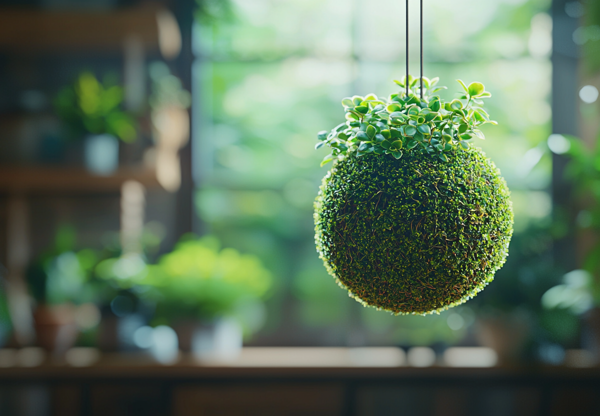 Кокедама — это современный японский стиль комнатного озеленения, который завоевывает популярность среди любителей домашних растений. Суть техники заключается в том, что растение выращивается в шаре из мха, превращая его в своеобразное живое произведение искусства. Такие растения можно подвешивать, ставить на подставки или даже размещать на декоративных тарелках, создавая уникальные композиции в интерьере.