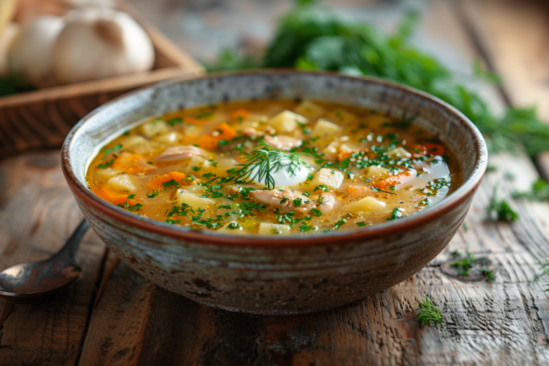 Когда времени на готовку мало, выручает простой, но хитрый прием — копченые крылья. Они быстро насыщают бульон вкусом и ароматом, словно суп томился несколько часов. В результате получаются густые, ароматные щи без лишних усилий.