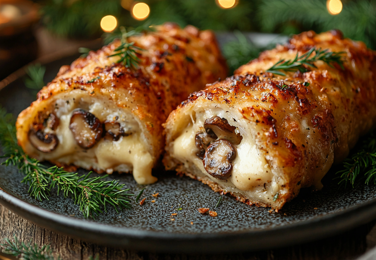 Вкус этого блюда — сочная куриная грудка с ароматной грибной начинкой и расплавленным сыром внутри, покрытая хрустящей золотистой корочкой.