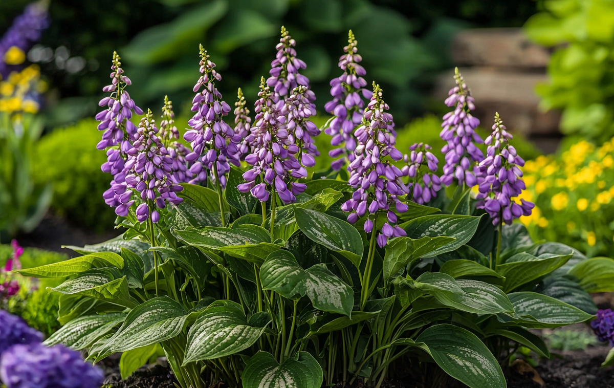 Это растение по праву носит титул королевы тенистого сада. Ее главное украшение — не столько цветы, сколько крупные, фактурные листья, образующие роскошные кусты. Они поражают разнообразием форм и расцветок: от изумрудно-зеленых и голубовато-сизых до пестрых с белой или золотистой каймой. Даже в условиях минимального солнца хоста выпускает высокие цветоносы с нежными колокольчатыми цветками сиреневого, белого или фиолетового оттенка, которые еще больше подчеркивают красоту листвы. Она распустится, довольствуясь парой часов солнца в сутки!