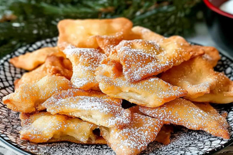 Жарьте в глубокой сковороде или кастрюльке с большим количеством масла (как для фритюра). Обжаривайте фигурки партиями до румяности, переворачивая щипцами или вилкой. Готовый хворост выкладывайте на бумажные полотенца, чтобы убрать лишнее масло.