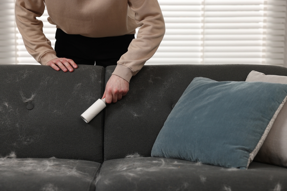 Начните с регулярной влажной уборки — это первый и очень важный шаг. Используйте тряпки из микрофибры или других синтетических тканей: они отлично собирают шерсть. Особое внимание уделите местам, где питомец любит отдыхать. Чтобы шерсть меньше оседала на мягкой мебели, одежде и коврах, периодически обрабатывайте их антистатиком — так вы снизите воздействие статического электричества.