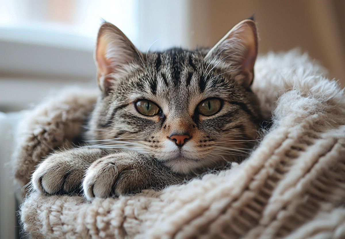 Чтобы сохранить здоровье любимца, стоит предложить ему мягкую лежанку рядом с батареей или повесить специальную полку. Так кошка получит комфортное тепло, но без риска перегрева и обезвоживания.