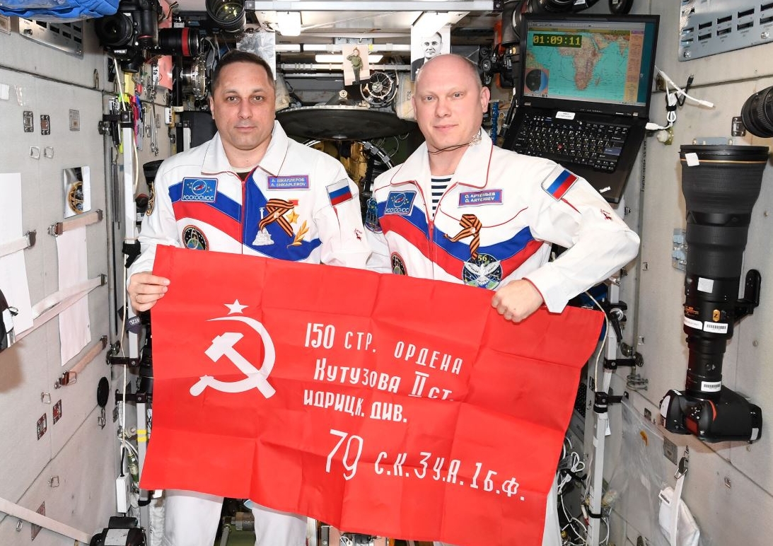 Артемьев развернул это знамя во время своего второго полёта на МКС вместе с другим российским космонавтом Антоном Шкаплеровым 9 мая 2018 года. На знамени стоят их подписи, печати МКС, дата акции и дата, когда знамя прилетело на станцию, сообщает РИА Новости.