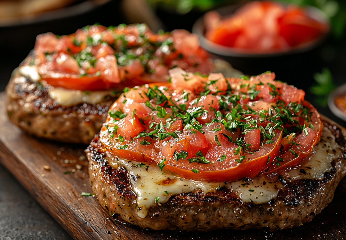 Котлеты больше не жарю, делаю из фарша обалденное горячее в духовке. Эти биточки получаются очень нежными и сочными, а ароматная аппетитная шапочка из расплавленного сыра и сочного помидора превращает блюдо в шедевр.