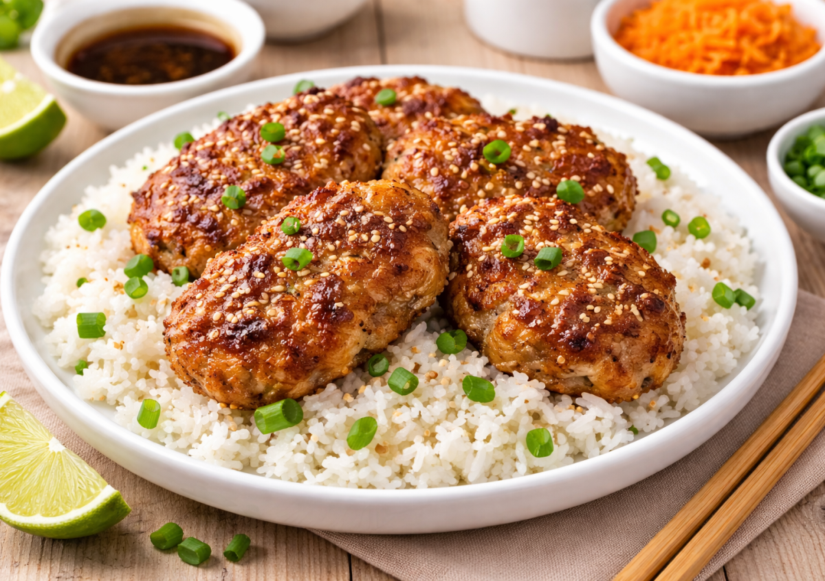 Попробовала и влюбилась с первого кусочка. Снаружи румяная корочка, внутри сочное мясо, аромат специй и соевого соуса. С рисом — просто идеальное сочетание, хочется готовить снова и снова. Эти котлеты получаются необычно нежными, с интересной текстурой и ярким вкусом. Благодаря крахмалу и маринаду они держат форму, остаются мягкими внутри и очень аппетитно подрумяниваются на сковороде.
