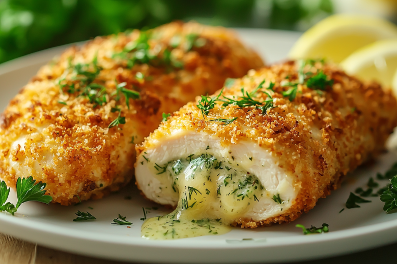 Это блюдо — проверенная временем классика, которая превращает простое куриное филе в праздничный ужин. Его магия — в сочной куриной котлете, скрывающей внутри холодное сливочное масло с зеленью, которое во время жарки превращается в ароматный, нежный соус. При правильном приготовлении вы получаете идеальный контраст: хрустящую золотистую панировку и невероятно сочное, ароматное мясо.