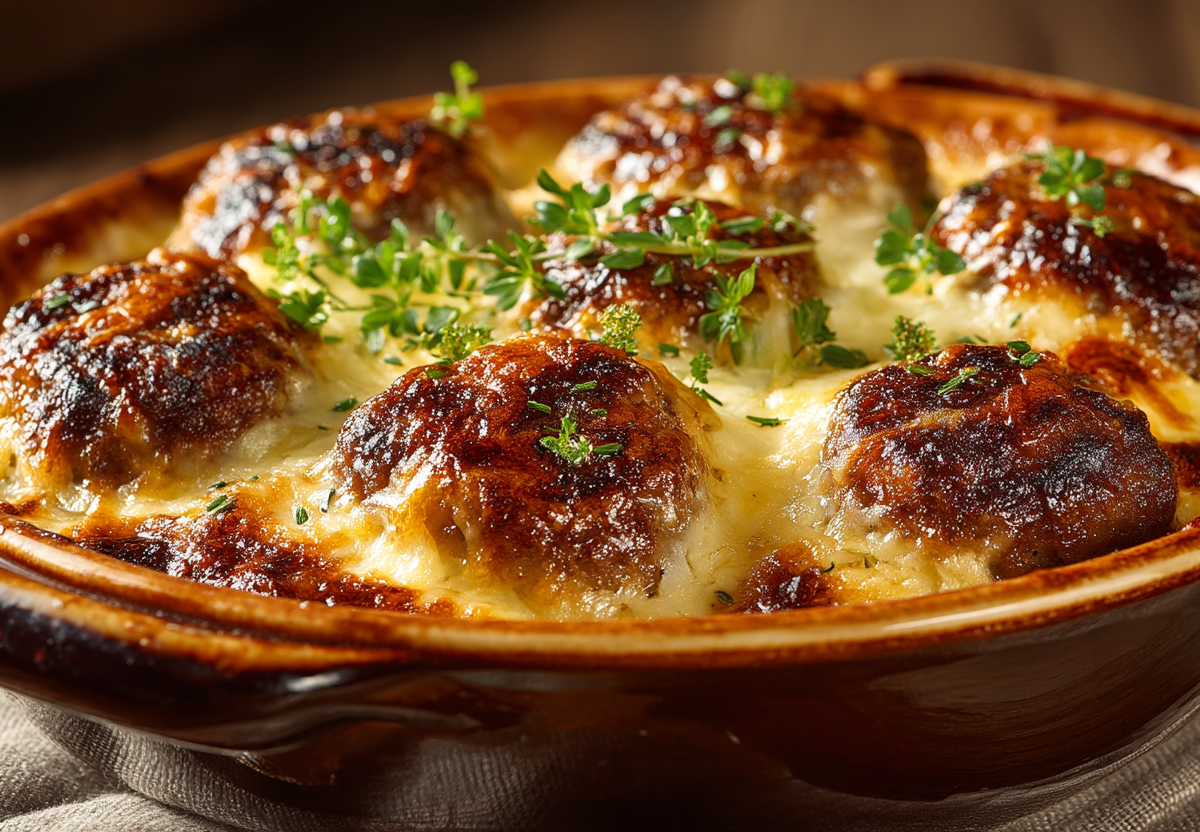 Это блюдо — гениальная альтернатива классическому мясу по-французски, где не требуется ювелирно нарезать дорогую телятину. Все что нужно — фарш, пара картофелин и немного сыра.