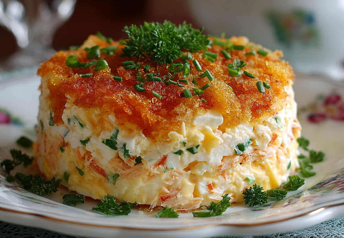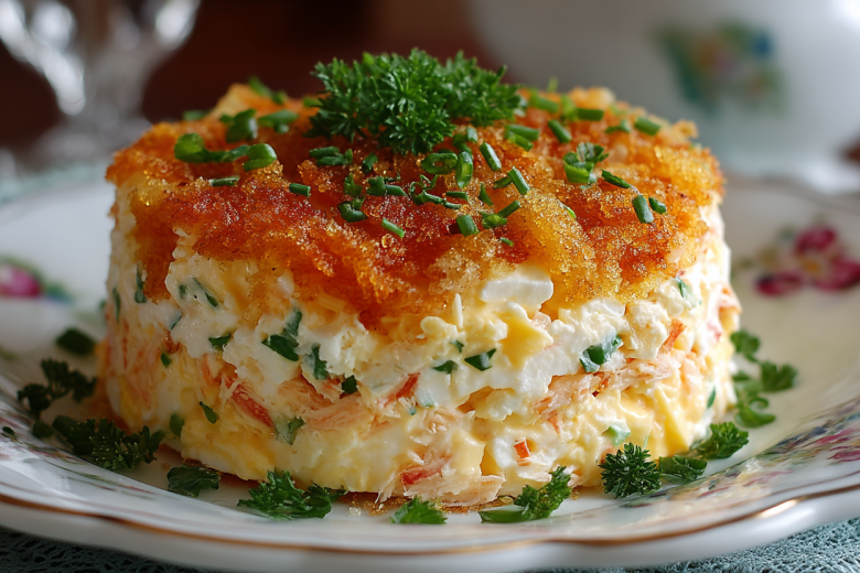 Беру крабовые палочки, сыр и яйца — и за 5 минут собираю слоеный салат, который выглядит как праздничный торт, а готовится проще простого. Это гениально простое и невероятно вкусное блюдо, идеальное для праздничного стола или быстрого ужина, когда хочется удивить гостей необычной подачей.