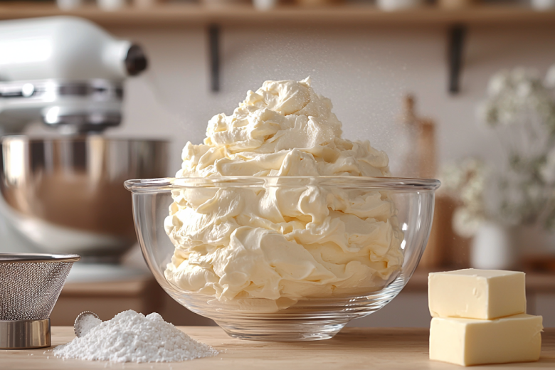 Сливочный сыр (300 г) и сливки 33% (150 мл) взбиваются до пышности с сахарной пудрой. Получается крем-облако — нежный, легкий, идеально подходит для капкейков и нежных тортов с ягодами. Главное — не перебить.