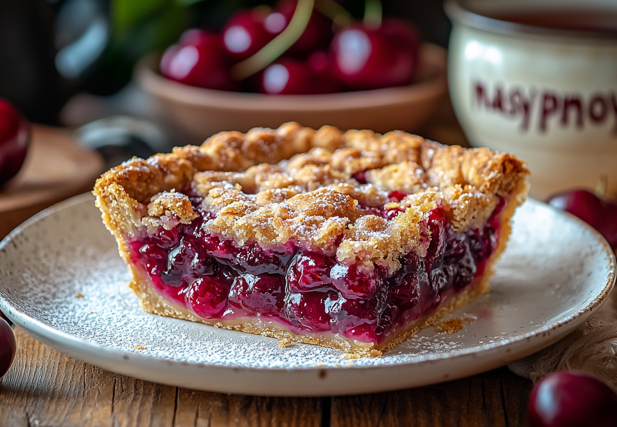 Круче, чем в кондитерской: вишневый пирог из песочного теста на сливочном масле. Этот пирог — идеальное сочетание нежного теста и яркой кисло-сладкой вишневой начинки. Хрустящая масляная крошка сверху делает его похожим на деревенскую классику из детства.