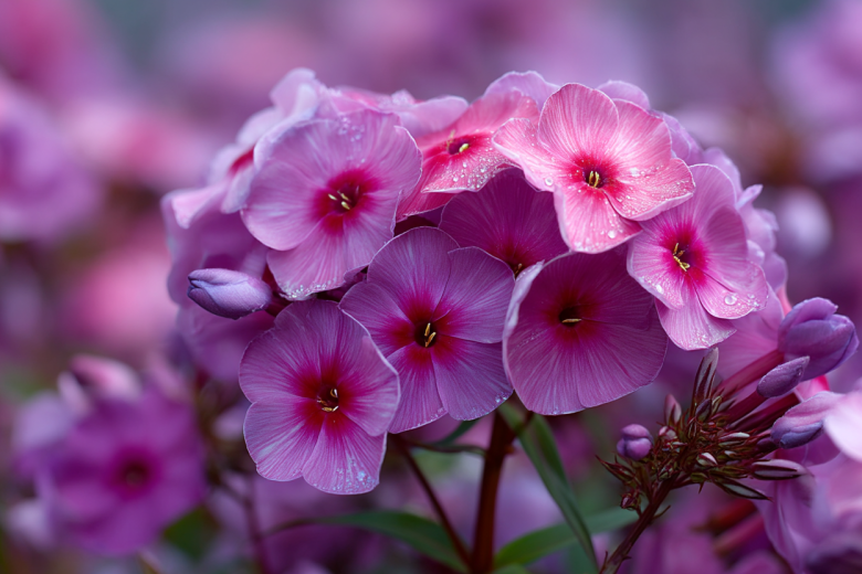 Флокс метельчатый «брайт айз» — сорт, который по праву считается классикой садоводства. Он был выведен в Голландии и за свою неприхотливость и невероятную красоту любим садоводами по всему миру. Его главное достоинство — крупные (диаметром до 4 см) соцветия теплого чистого розового цвета с ярким контрастным малиновым глазком в центре, которые собраны в плотные округло-конические шапки. Этот сорт не только радует глаз, но и наполняет сад приятным, нежным ароматом.