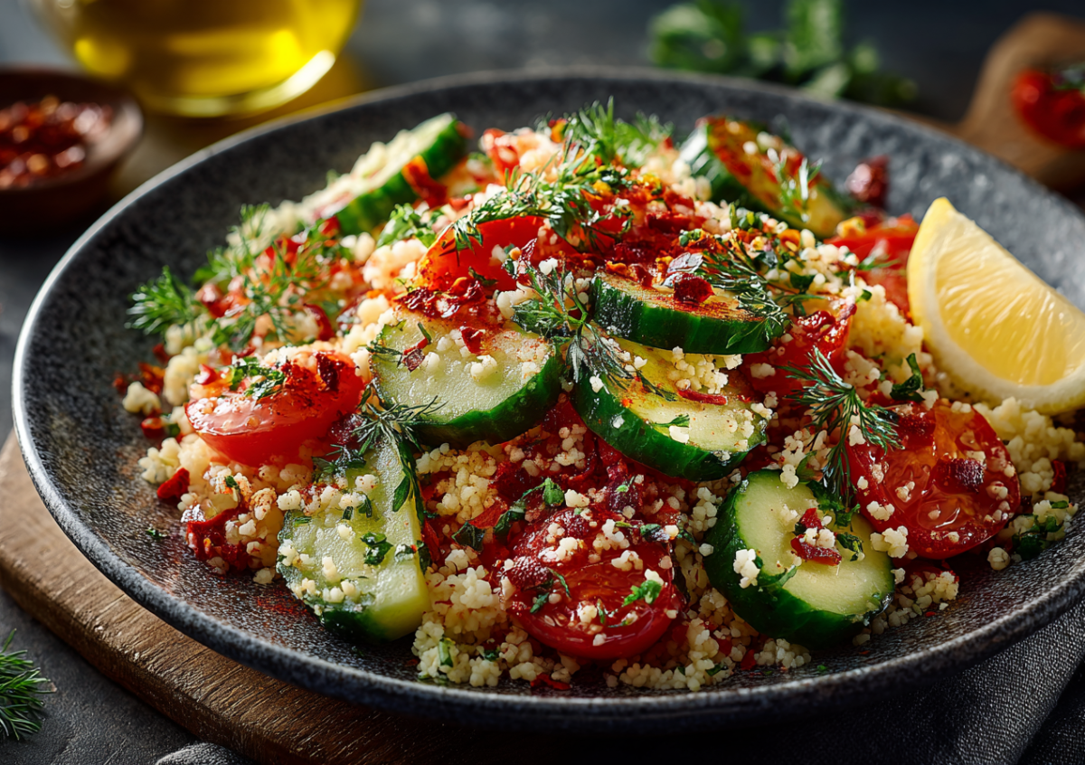 Это блюдо называют «офисным спасением»: оно легкое, яркое, насыщенное и готовится стремительно. Достаточно залить булгур кипятком и, пока он набухает, нарезать огурец, помидор, зелень, немного лука и сбрызнуть все лимоном. Добавьте ложку оливкового масла — и обед готов. Такой салат сохраняет энергию и не вызывает сонливости.