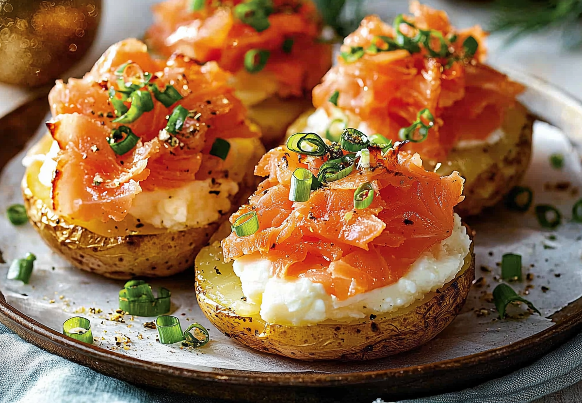 Берем: картофель — 5 шт., лосося слабосоленого — 100 г, сыр творожный — 2 ст. л., зеленый лук — небольшой пучок, оливковое масло, специи (соль, перец, чесночный порошок или любимые пряности).