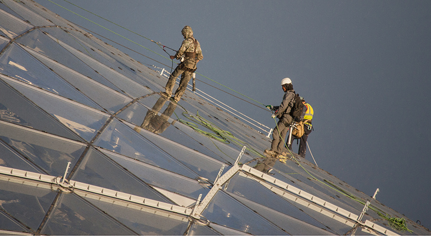 Собственно, вот эта «кора» и пострадала. Итогом первого дня общественного променада стала сеть микротрещин на одном из её фрагментов. По словам директора по проектированию гражданских проектов АО «Мосинжпроект» Галины Гардюшиной, «характер повреждения одного из треугольников стеклянной „коры“ свидетельствует о том, что было какое-то физическое воздействие. Треснуло также световое окно на крыше павильона „Медиацентр“. Причём не из-за того, что по нему прошлись или попрыгали, — материал выдерживает до 300 килограммов. Это явно произошло от удара каким-то предметом».