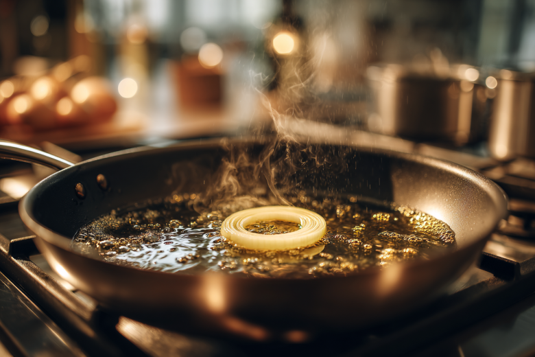Как же понять сигналы нашего лукового помощника? Если кусочек лежит спокойно, не шипит и не меняет цвет — значит, масло еще холодное. А если лук моментально чернеет и дымится — ой-ой, масло перегрелось! Но не пугайтесь, это легко исправить.