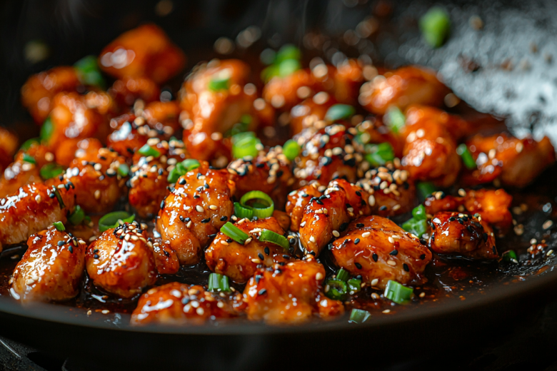 Готовлю так: 700 г куриного филе режу кубиками, обваливаю в смеси кукурузного крахмала, соли и перца. Обжариваю на сильном огне до хрустящей корочки. Для соуса смешиваю 2 ст. л. меда, 2 ст. л. соевого соуса, 1,5 ст. л. яблочного уксуса, 3 ст. л. кетчупа, 1 ст. л. масла, давленый чеснок и паприку. Развожу 0,5 ст. л. крахмала в 70 мл воды, вливаю в соус и увариваю до загустения. Заливаю курицу соусом, прогреваю минуту, посыпаю зеленым луком и кунжутом. Подаю с рисом — блюдо исчезает со стола быстрее, чем я успеваю рассказать его историю.