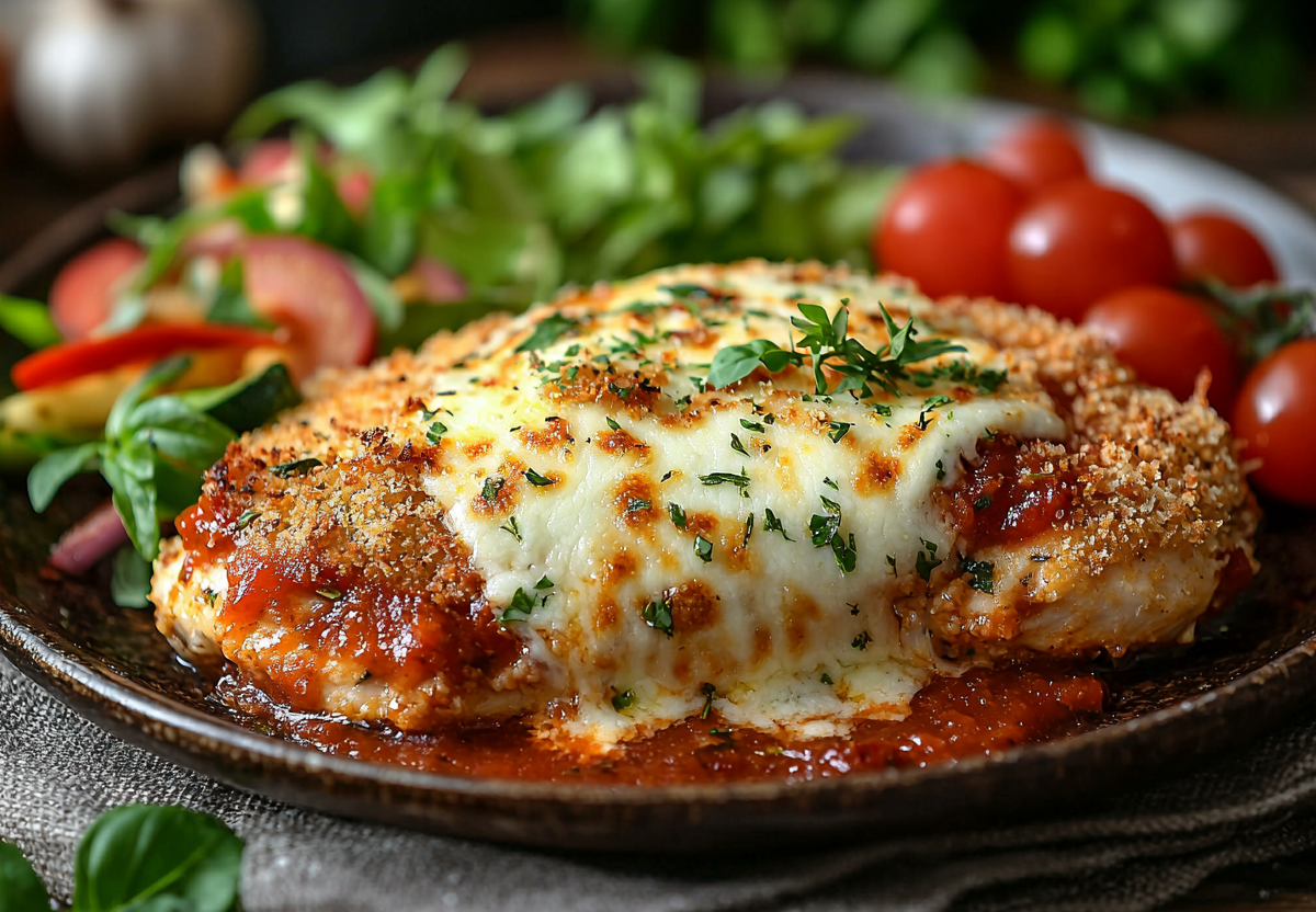 Курица в сухарях под сыром и томатным соусом: 15 минут, и вкусный обед готов. Хрустящее наслаждение без лишних хлопот! Нежное куриное филе в золотистой панировке с расплавленным сыром и томатным соусом. Идеальный ужин для тех, кто ценит вкус и экономит время!