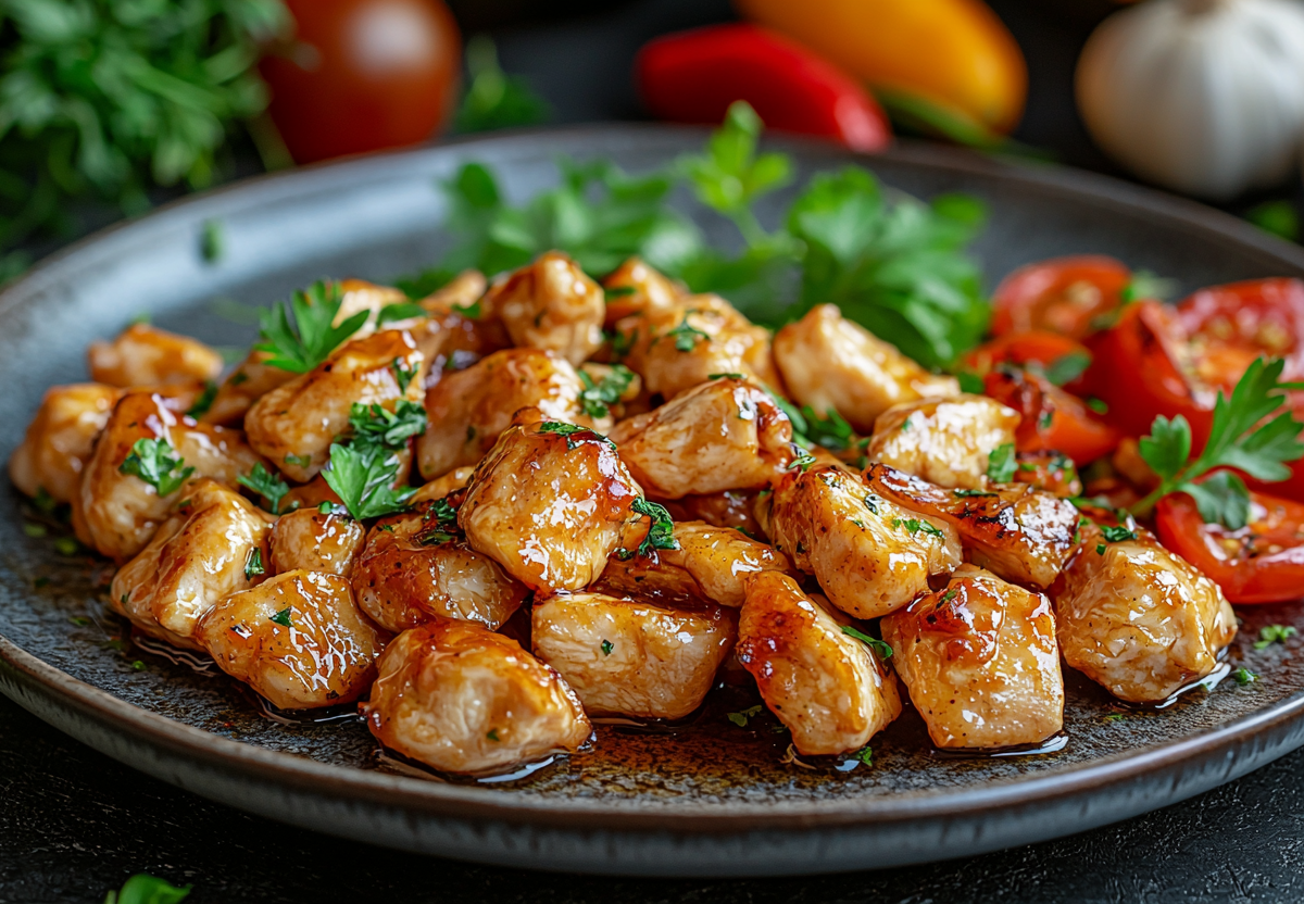 Это идеальный баланс сладости меда, пикантности горчицы и глубины соевого соуса, который полностью раскрывает вкус курицы. Калорийность порции (200 г) — всего 180 ккал, при этом 30 г белка и минимум жиров — идеальный вариант ПП-ужина.