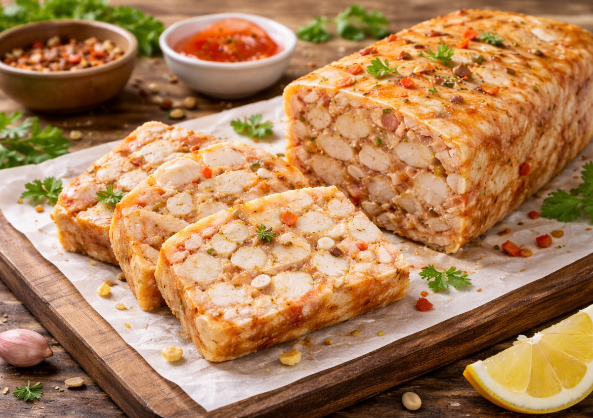 Если вы ищете полезную замену магазинной колбасе, этот куриный сальтисон — находка. Он получается нежным, плотным по текстуре, с яркой пикантной ноткой чили и ароматом специй, но без лишнего жира и добавок. Отличный вариант для бутербродов, нарезки к столу и для тех, кто следит за питанием.