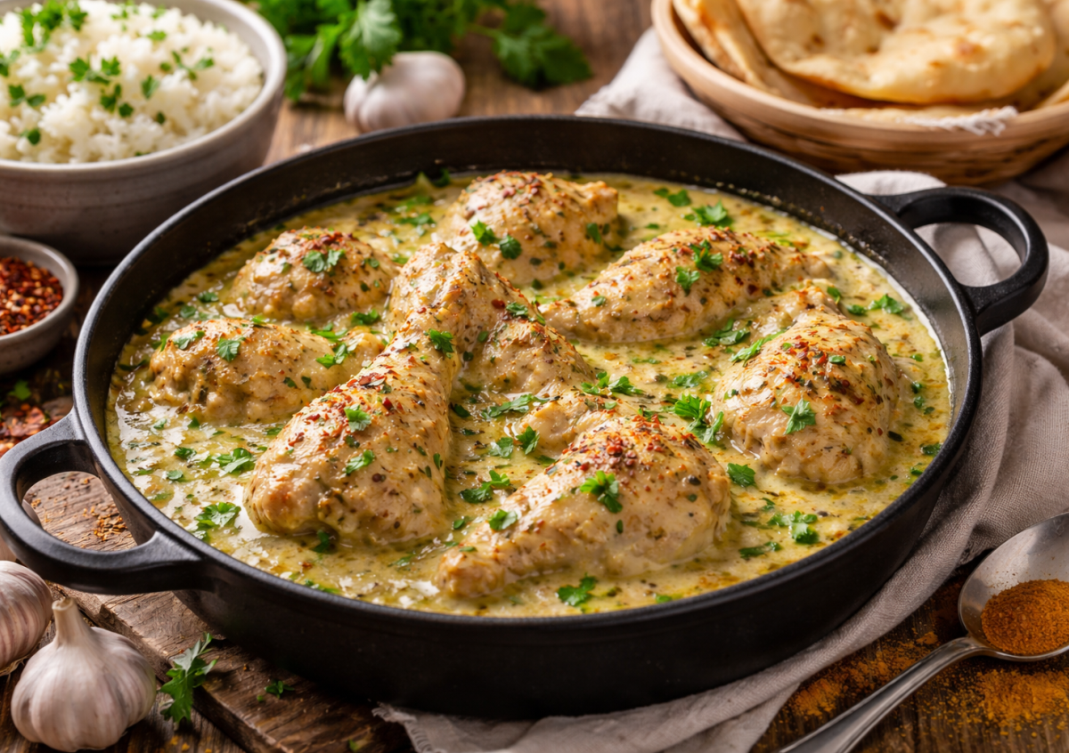 Откройте для себя простоту и глубину кавказской кухни. Гедлибже — это нежная курица, томленная в густом соусе, где жареный лук, превращенный в бархатное пюре, соединяется со сметаной и пряностями. Блюдо получается сытным, ароматным и по-домашнему согревающим. Идеальный вариант для семейного ужина, который готовится без лишней суеты.