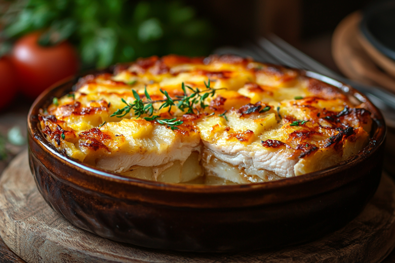 Это блюдо я впервые приготовил, когда нужно было удивить гостей необычным сочетанием продуктов. Меня поразило, как простая курица под картофельной шубой превращается в настоящий кулинарный шедевр. Теперь это мой проверенный рецепт для сытного семейного ужина — сочный, ароматный и очень красивый.