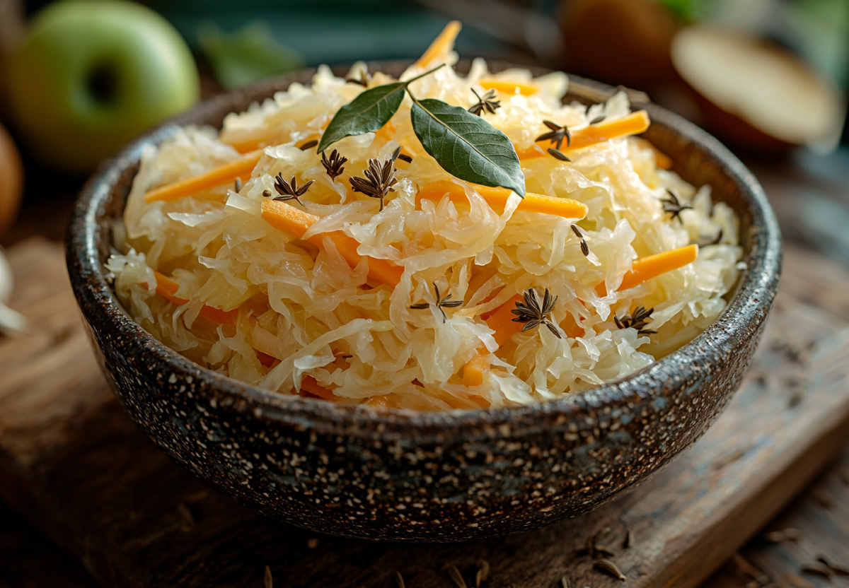 Квашеная капуста по‑немецки: обалденный рецепт от немецких хозяек, 1 ингредиент — и получается шедевр. Попробуйте этот рецепт — именно так готовят хозяйки в Германии! Особенность местного варианта — добавление яблочных долек: они придают блюду деликатную сладковатую нотку и лёгкую фруктовую свежесть. Это не просто закуска, а настоящий кладезь витаминов: молочная кислота улучшает пищеварение, а витамин C укрепляет иммунитет. К тому же блюдо низкокалорийное и отлично сочетается с мясом, картошкой или просто как самостоятельный салат.
