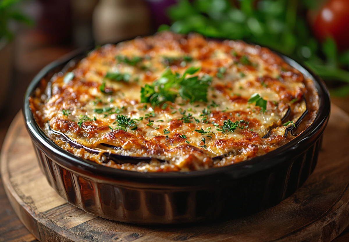 - В форму для запекания выкладывайте слоями: баклажаны → фарш → баклажаны → фарш. Сверху посыпьте тёртым сыром и запекайте 30 минут при 180 °C до румяной корочки.