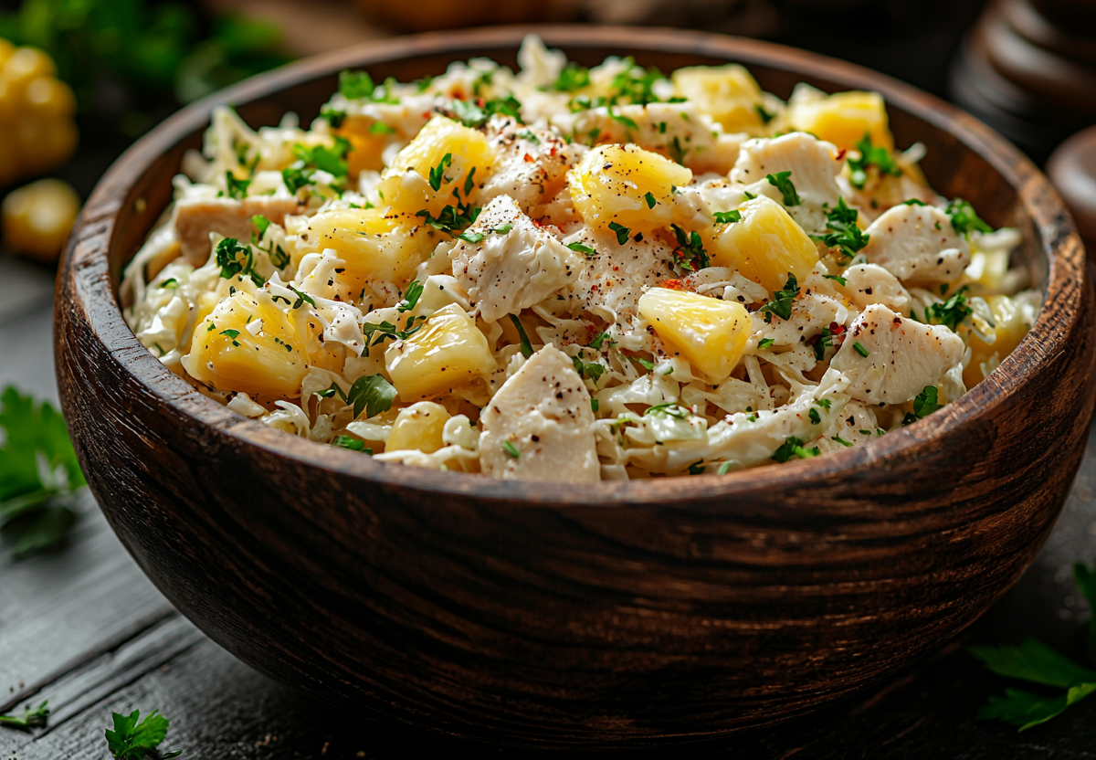 Легендарный салат с курицей и ананасами можно приготовить в легкой версии с пекинской капустой и без капли майонеза. Это блюдо сочетает в себе сытность и невероятную свежесть, идеально подходя для ужина или праздника.