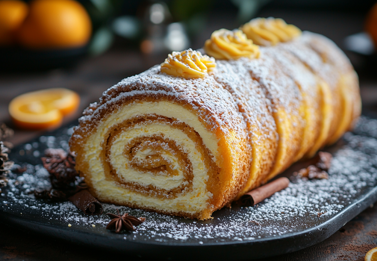 Рецепт: для бисквита взбейте 4 яйца со стаканом сахара до пышной светлой массы, аккуратно введите стакан просеянной муки. Вылейте тесто на противень, застеленный промасленным пергаментом, разровняйте и выпекайте в разогретой до 180 °C духовке 10–12 минут до золотистого цвета. Готовый горячий корж сразу переверните на чистое полотенце, снимите пергамент и, пока он теплый, сверните в рулет вместе с полотенцем, оставьте остывать. Для крема смешайте 400 г творога, 100 г мягкого сливочного масла, 5 ст. л. сахарной пудры и ванилин до однородности. Остывший рулет аккуратно разверните, равномерно распределите творожный крем, оставив свободными края, и снова сверните уже с начинкой. Уберите в холодильник на пару часов для пропитки. Перед подачей посыпьте сахарной пудрой.