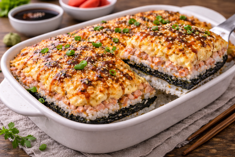 Ленивая суши-запеканка с крабовой шапкой — вкус любимых роллов без доставки и лишних хлопот