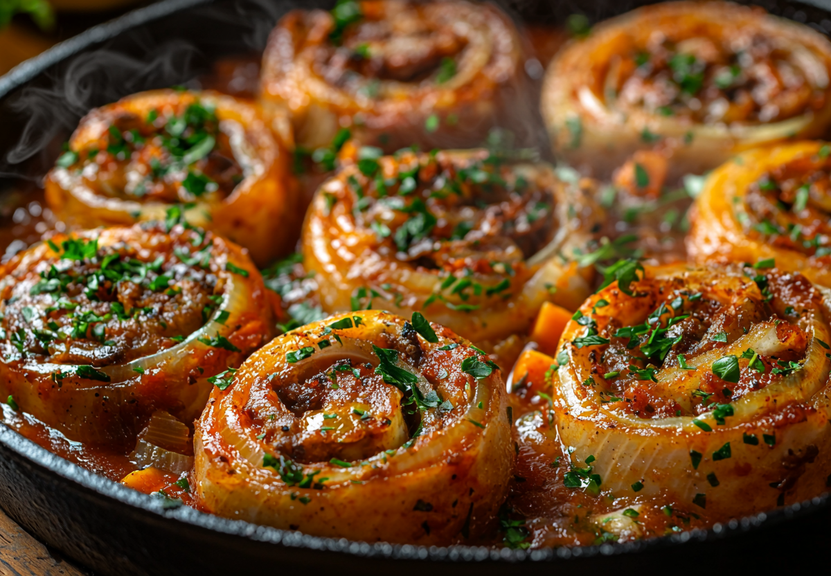Ленивые манты с ароматной подливой! Настоящая палочка-выручалочка! Этот рецепт — настоящая находка для тех, кто любит сочные манты, но не хочет тратить время на лепку каждой штучки. Вместо традиционного способа мы замешиваем простое тесто, раскатываем его в большой пласт, равномерно распределяем ароматный фарш, сворачиваем рулетом и нарезаем на порционные кусочки. Вкусно и в разы быстрее классического варианта!