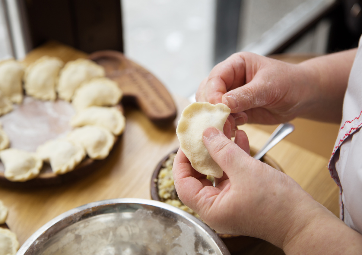 Готовые вареники можно заморозить — просто разложите на доске и отправьте в морозилку, а потом пересыпьте в пакет.