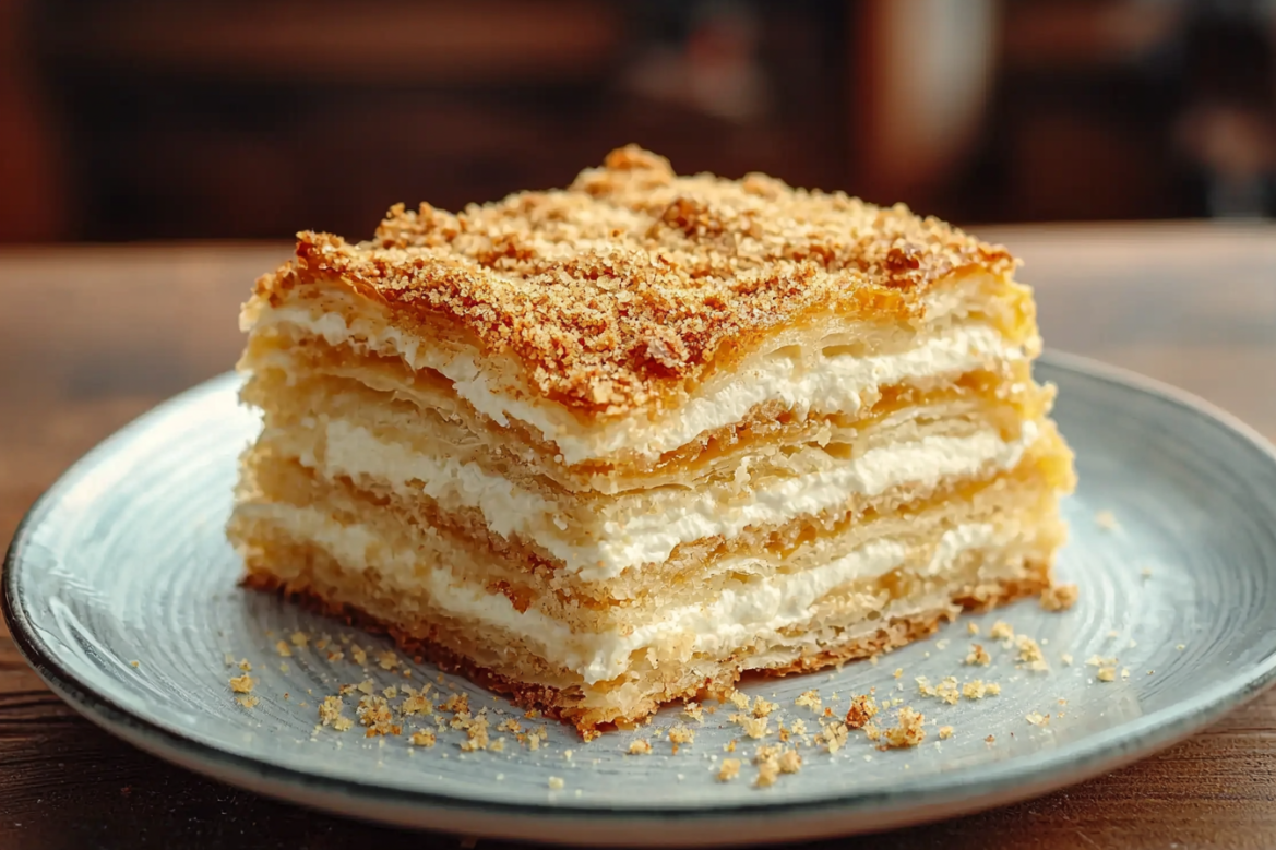 Этот вариант знаменитого торта идеально подойдет, если нет времени возиться с тестом и духовкой. Готовый слоеный корж и простой крем превращаются в нежный десерт, который не уступает классике по вкусу. Отличный способ порадовать гостей или себя, когда хочется сладкого без долгой готовки.