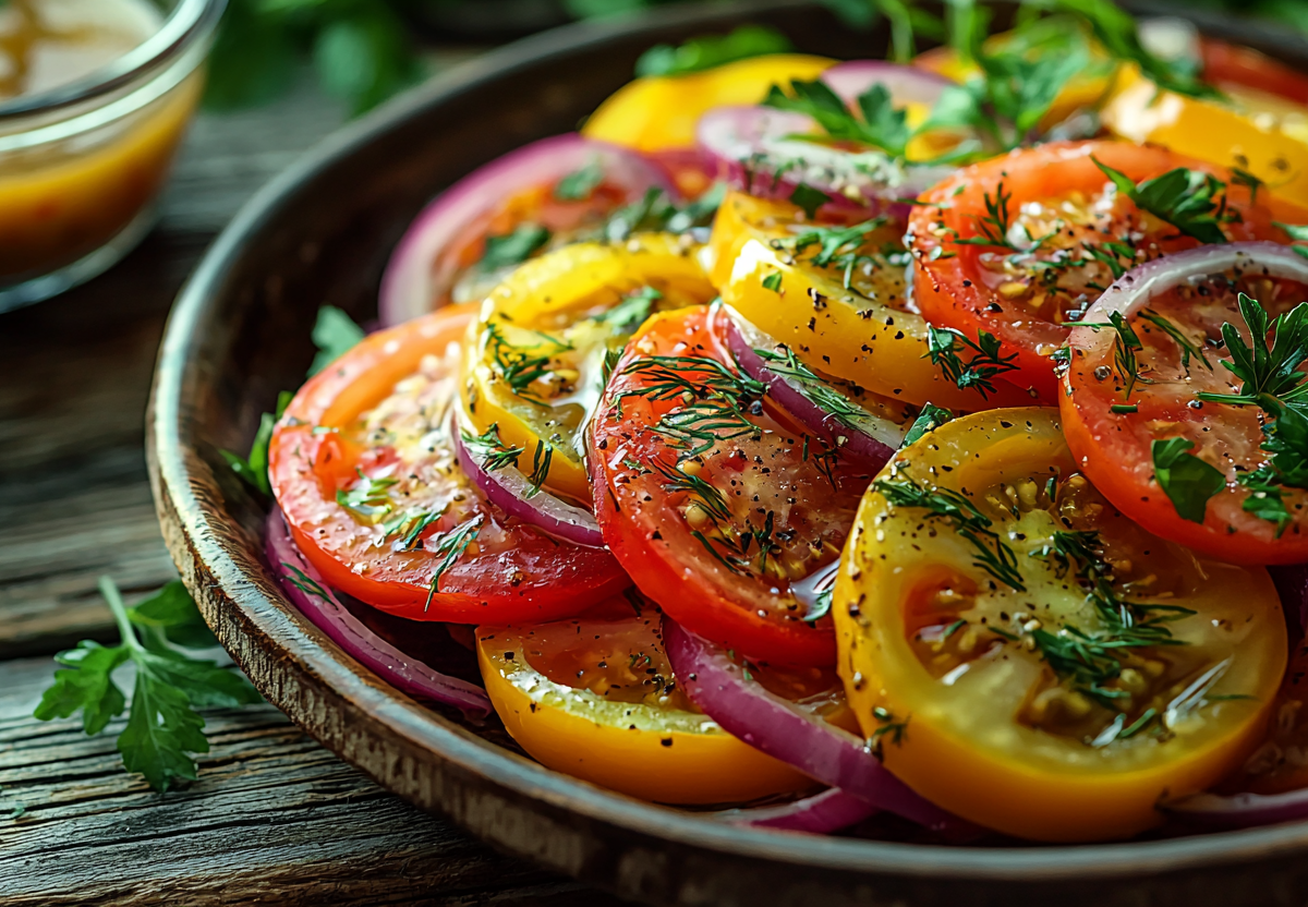 Летний салат из помидоров с горчично-медовой заправкой! Очень вкусно