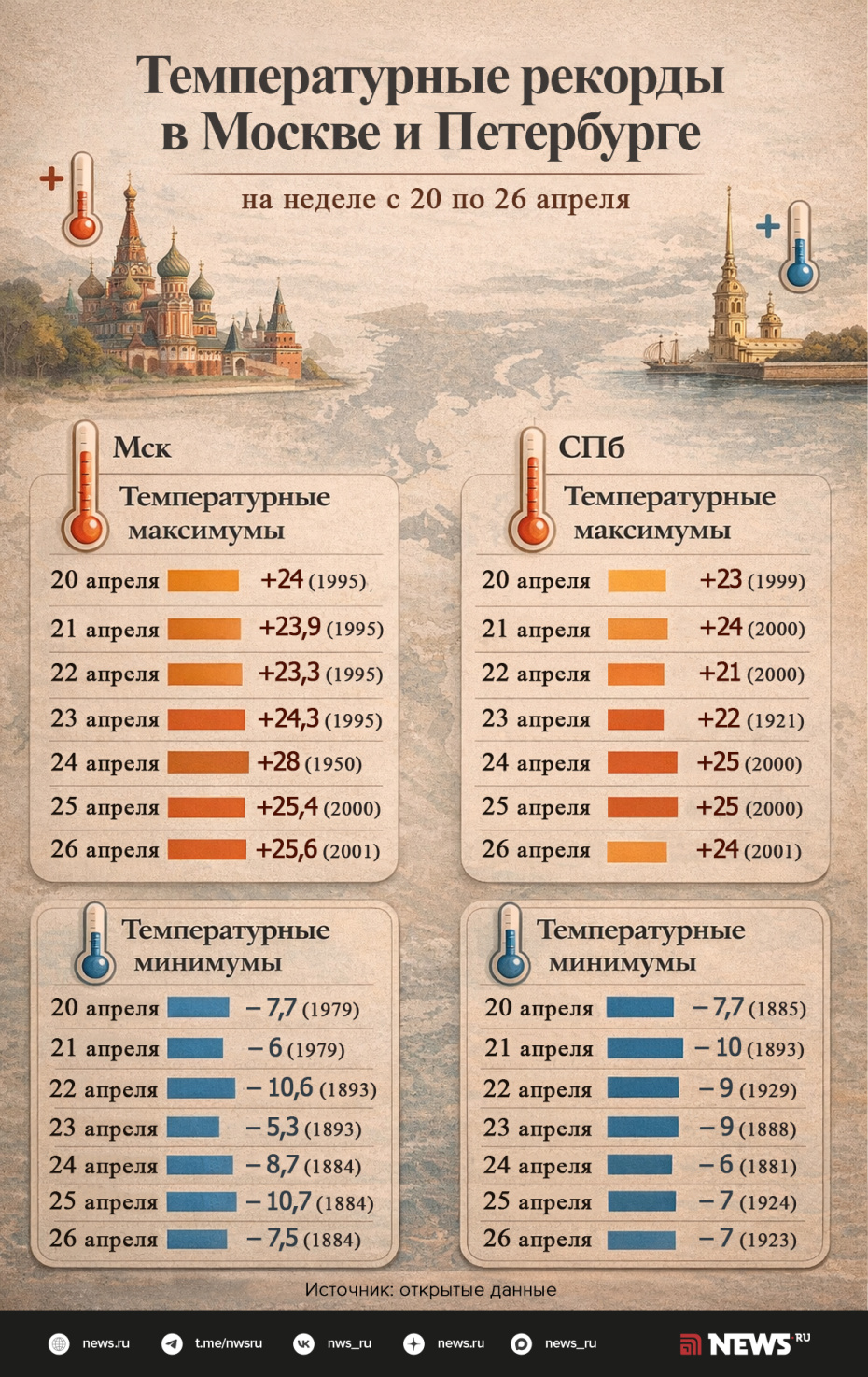 Какая погода ожидается с 20 по 26 апреля в Петербурге и на северо-западе РФ