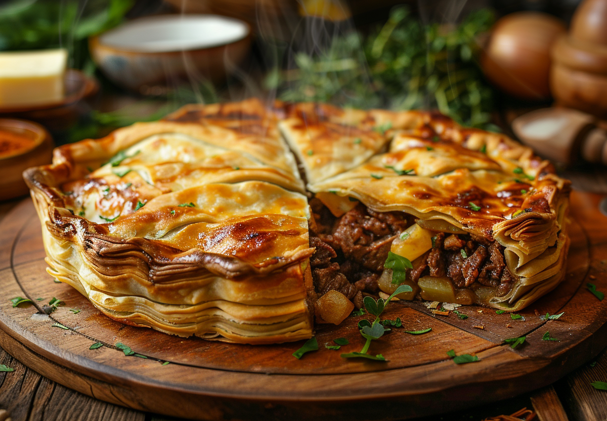 Лезгинский цкан с мясом и картофелем — сытно и ароматно! Цкан — это не просто пирог, а настоящее воплощение кавказского гостеприимства. Слоеное тесто, сочная мясная начинка и ароматный картофель — сочетание, от которого невозможно отказаться. Готовится несложно, а результат впечатляет!