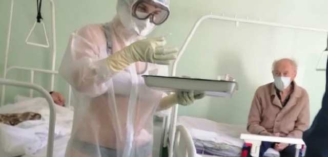 Фото медсестры в бикини под прозрачным защитным костюмом сделал один из пациентов Тульской областной больницы. После того как оно попало в СМИ и Интернет, медработник получила дисциплинарное взыскание. Сама она объяснила, что решила надеть защитный костюм прямо на нижнее бельё из-за жары, при этом не знала, насколько костюм прозрачен.