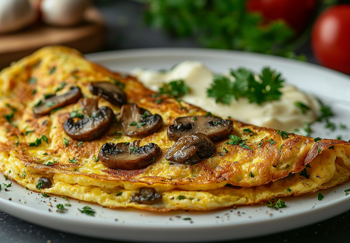 Этот омлет — как солнечное утро на тарелке! Он золотистый, с тянущимся сыром и ароматными грибами. Идеально быстрый и сытный вариант, чтобы зарядиться энергией с самого утра.